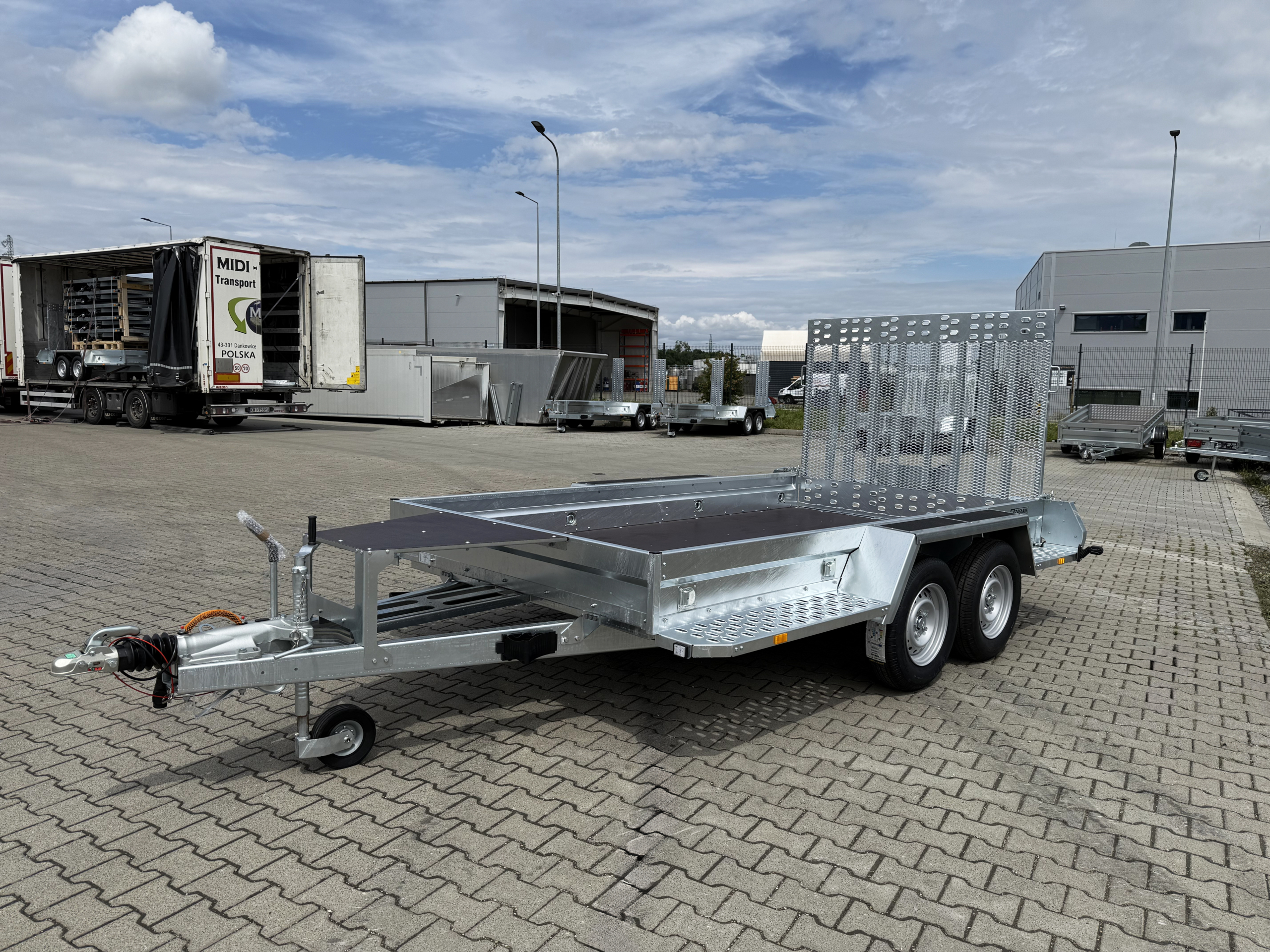 Szukasz niezawodnej przyczepy do transportu koparki lub innego ciężkiego sprzętu? Nasza przyczepa z wbudowaną rampą załadunkową to praktyczne i trwałe rozwiązanie dla profesjonalistów.