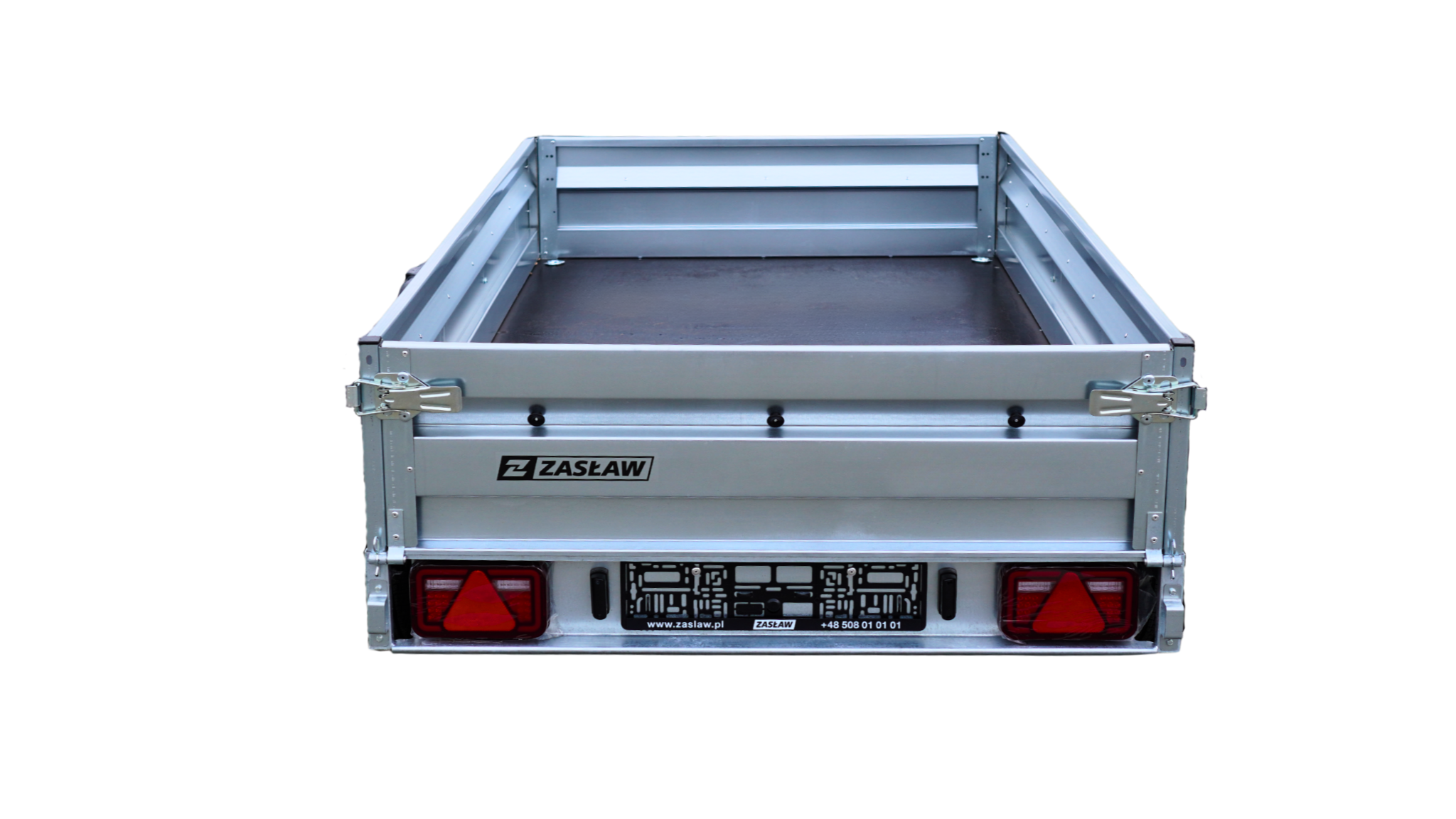 Przyczepy towarowe Zasław to nowoczesna linia przyczep samochodowych wykonanych z najlepszych dostępnych na polskim rynku materiałów. Produkty tej kategorii charakteryzuje m.in.: nowoczesny design burt walcowanych na zimno, wytrzymałe zaczepy burtowe z kompensacją oraz dyszel prowadzony od osi dla większej wytrzymałości konstrukcji. Wszystkie elementy ramy cynkowane są ogniowo, co gwarantuje ich trwałość i dużą odporność na korozję. Model 205SU posiada oś o DMC 750kg, uchylną skrzynię i otwieraną przednią burtę oraz system szybkiego demontażu burt.