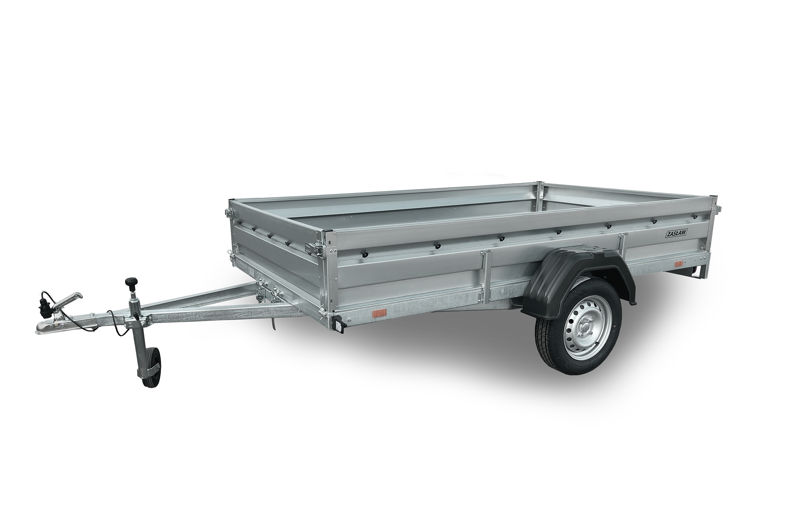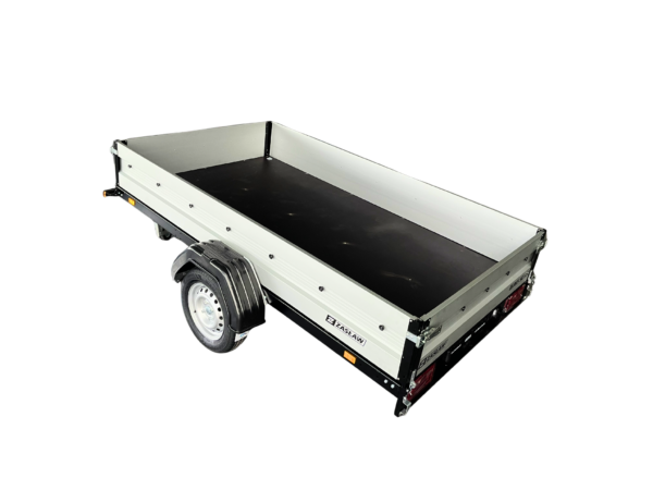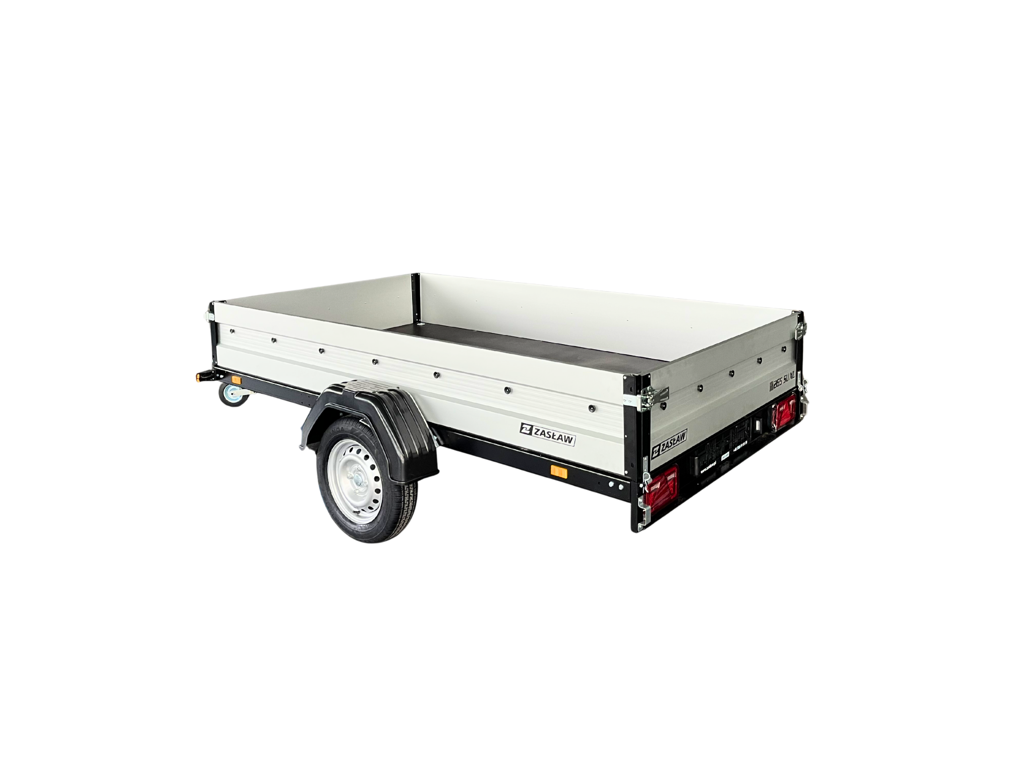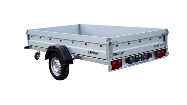 Przyczepy towarowe Zasław to nowoczesna linia przyczep samochodowych wykonanych z najlepszych dostępnych na polskim rynku materiałów. Produkty tej kategorii charakteryzuje m.in.: nowoczesny design burt walcowanych na zimno, wytrzymałe zaczepy burtowe z kompensacją oraz dyszel prowadzony od osi dla większej wytrzymałości konstrukcji. Wszystkie elementy ram cynkowane są ogniowo, co gwarantuje ich trwałość i dużą odporność na korozję. Model 265SU XL posiada dodatkowo: oś o DMC 750kg, uchylną skrzynię i otwieraną przednią burtę oraz system szybkiego demontażu burt. Wyposażony jest także w: koło podporowe z obejmą oraz uchwyty mocujące towar.