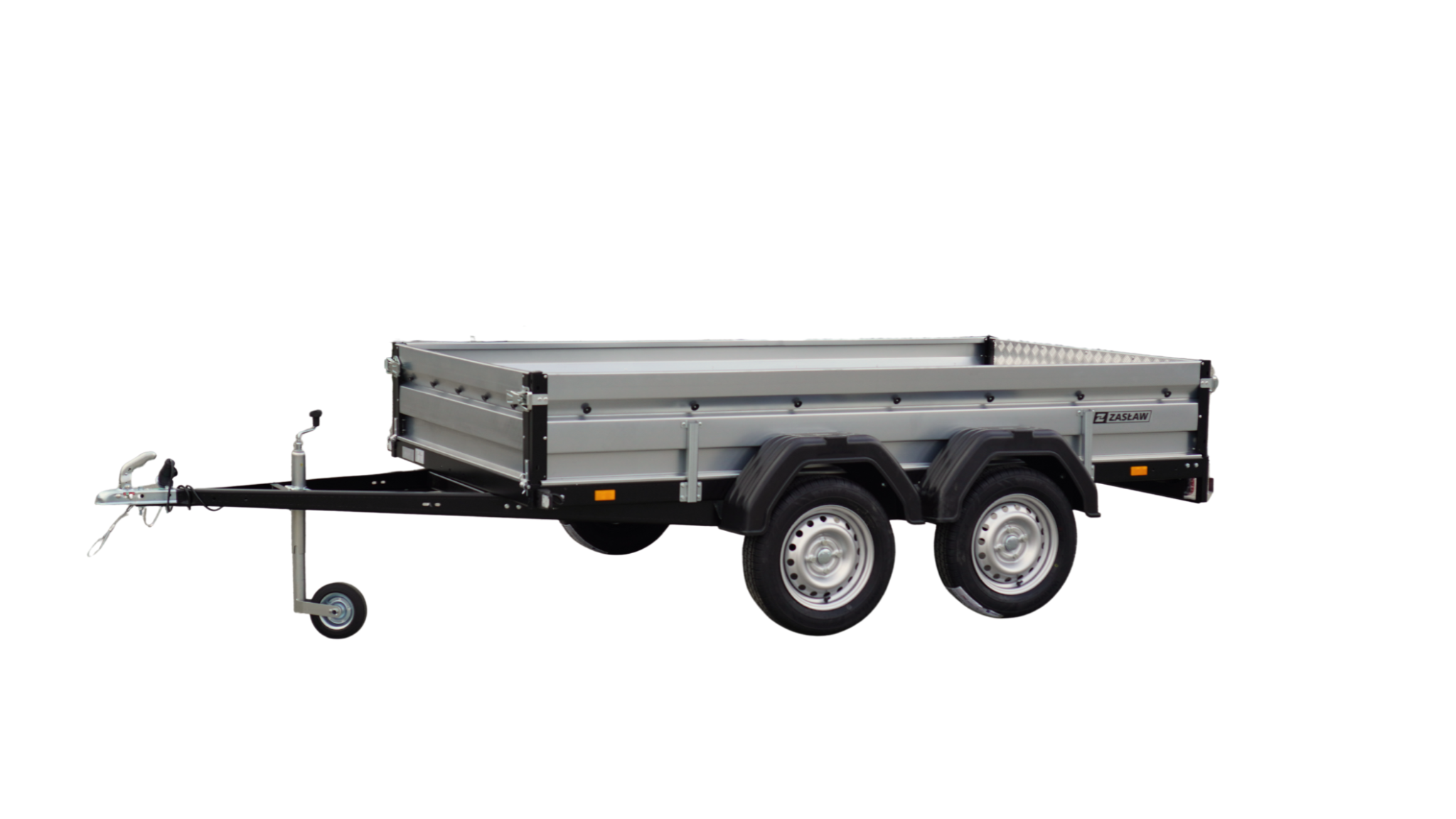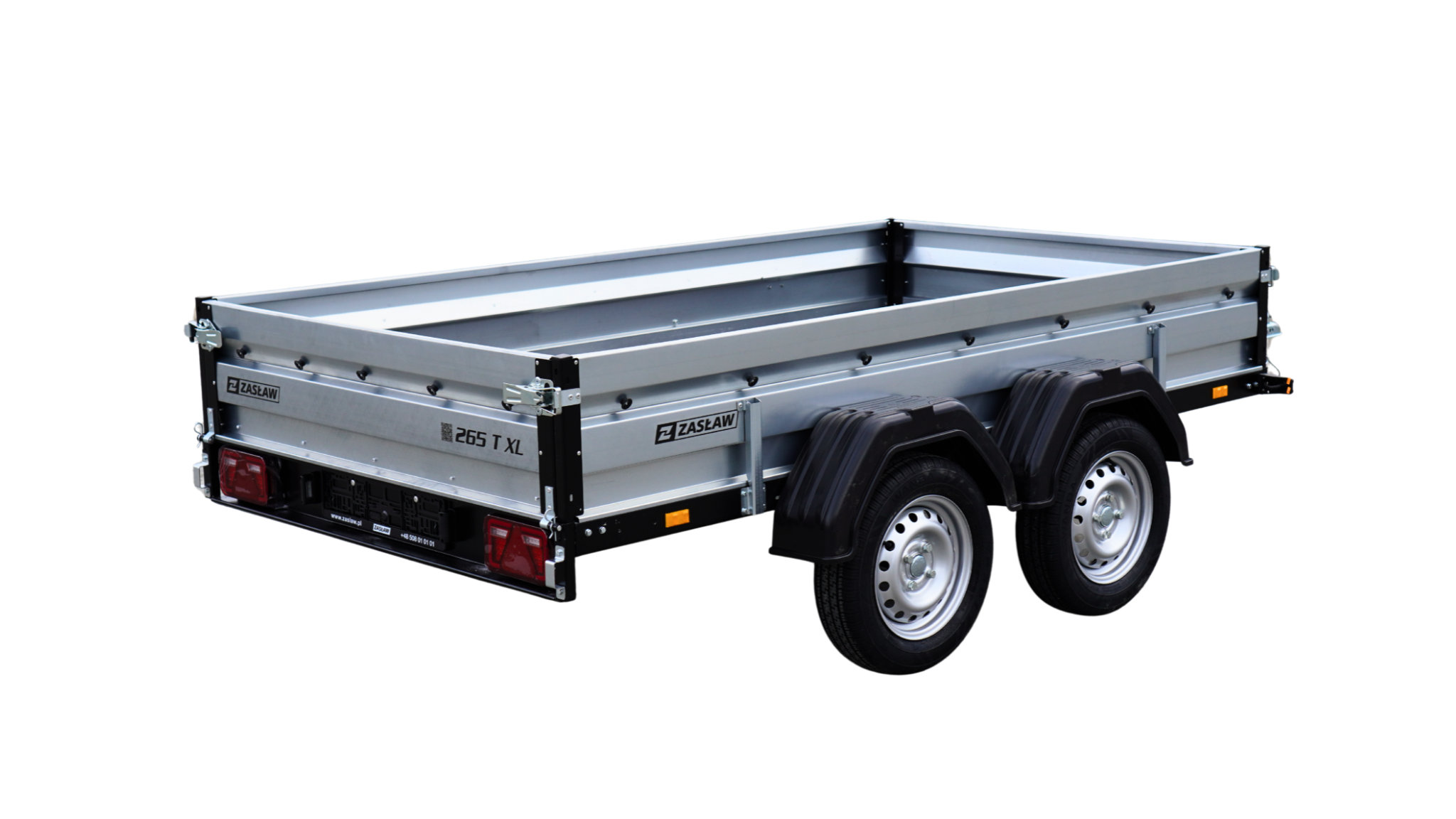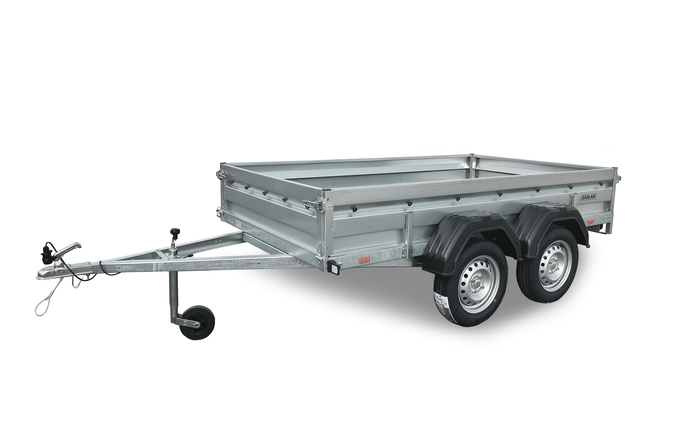 Przyczepy towarowe Zasław to nowoczesna linia przyczep samochodowych wykonanych z najlepszych dostępnych na polskim rynku materiałów. Produkty tej kategorii charakteryzuje m.in.: nowoczesny design burt walcowanych na zimno, wytrzymałe zaczepy burtowe z kompensacją oraz dyszel prowadzony od osi (o DMC 750kg) dla większej wytrzymałości konstrukcji. Przyczepy towarowe Zasław w standardzie wyposażono w instalację elektryczną. Wszystkie elementy ram cynkowane są ogniowo, co gwarantuje ich trwałość i dużą odporność na korozję. Model 265T XL posiada dodadkowo otwieraną przednią burtę oraz system szybkiego demontażu burt. Wyposażony jest także w: koło podporowe z obejmą, rolki mocujące plandekę oraz uchwyty mocujące towar i ramkę tablicy rejestracyjnej.