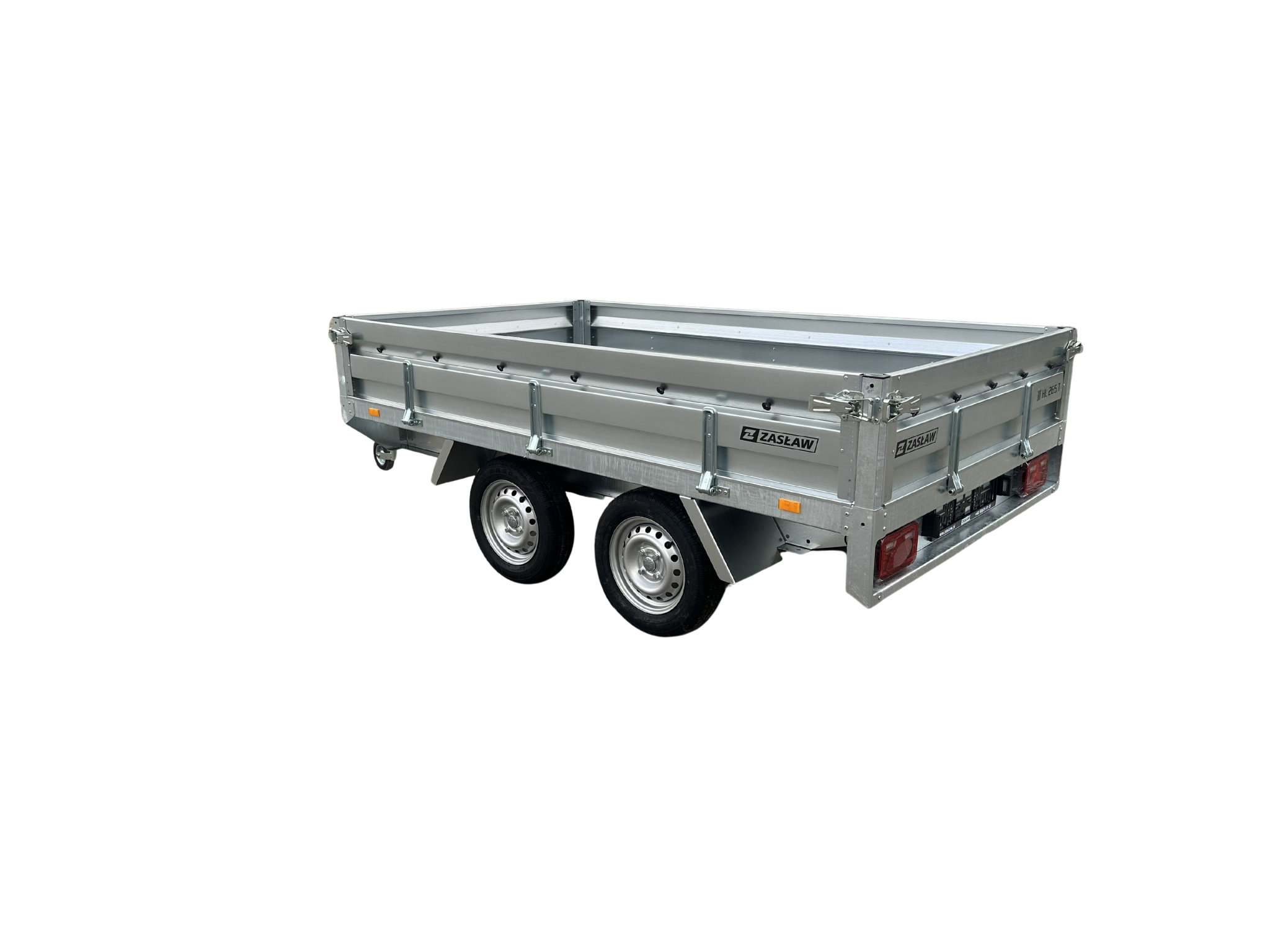 Remorcile de marfă Zasław sunt o linie modernă de remorci auto fabricate din cele mai bune materiale disponibile pe piața poloneză. Produsele din această categorie se caracterizează prin: designul modern al părților laterale laminate la rece, cârlige laterale durabile cu compensare și bara de tracțiune ghidată de pe axă (cu un GVW de 750 kg) pentru o mai mare durabilitate a structurii. Remorcile de marfă Zaslaw sunt dotate standard cu instalație electrică. Toate componentele cadrului sunt galvanizate la cald, ceea ce garantează durabilitatea și rezistența ridicată la coroziune. Modelul HL265T are o parte frontală cu deschidere suplimentară și un sistem de demontare rapidă pentru părțile laterale. Modelul HL265T are, de asemenea, o roată de susținere cu suport, role pentru fixarea prelatei și suporturi pentru fixarea mărfurilor și a cadrului plăcuței de înmatriculare.