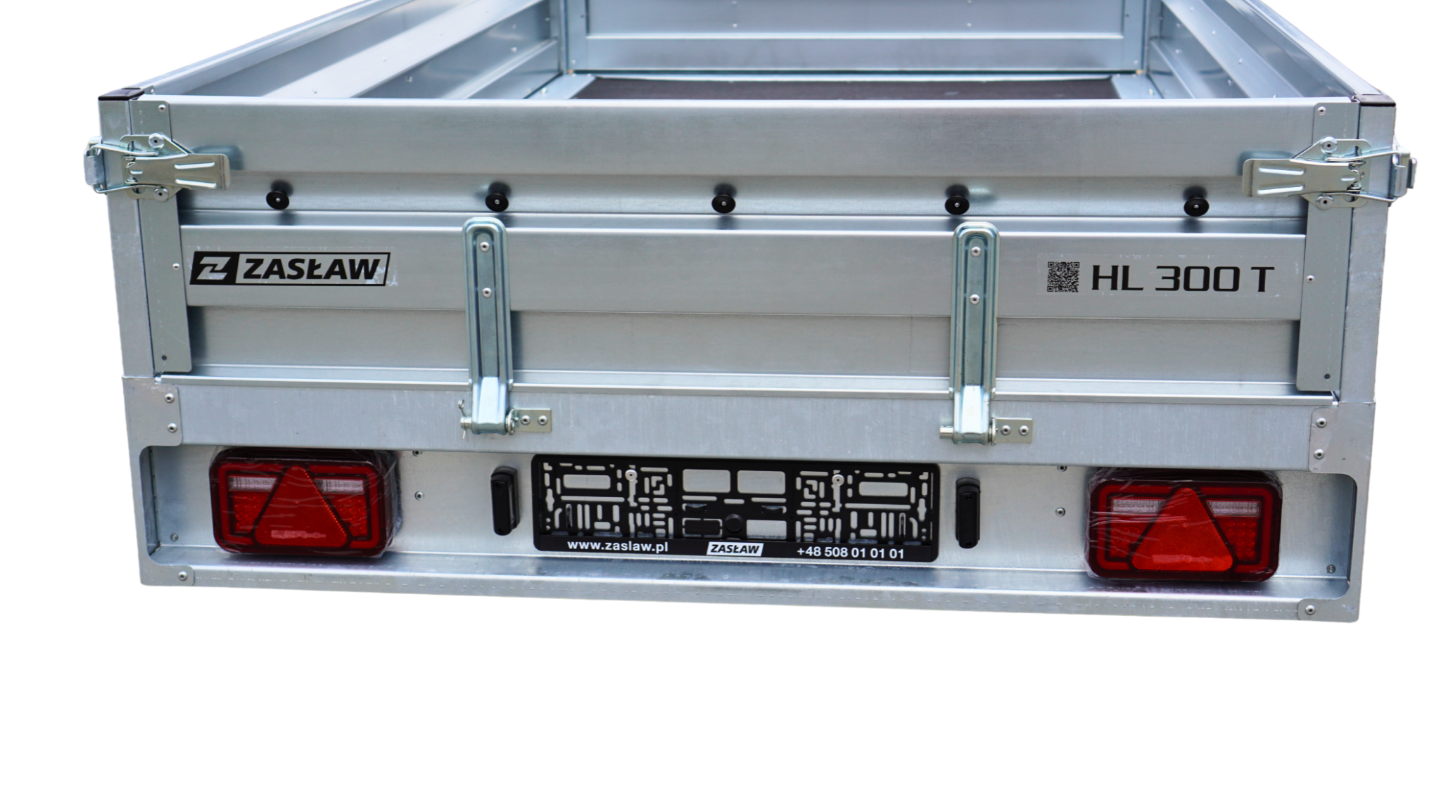 Remorcile de marfă Zasław sunt o linie modernă de remorci auto fabricate din cele mai bune materiale disponibile pe piața poloneză. Produsele din această categorie se caracterizează prin: designul modern al părților laterale laminate la rece, cârlige laterale durabile cu compensare și bara de tracțiune ghidată de pe axă (cu un GVW de 750 kg) pentru o mai mare durabilitate a structurii. Remorcile de marfă Zaslaw sunt dotate standard cu instalație electrică. Toate componentele cadrului sunt galvanizate la cald, ceea ce garantează durabilitatea și rezistența ridicată la coroziune. Modelul HL300T are, în plus, o parte frontală care se deschide și un sistem de demontare rapidă pentru părțile laterale. Modelul HL300T este echipat, de asemenea, cu o roată de susținere cu suport, role pentru fixarea prelatei, suporturi de fixare a încărcăturii și un cadru pentru plăcuța de înmatriculare.