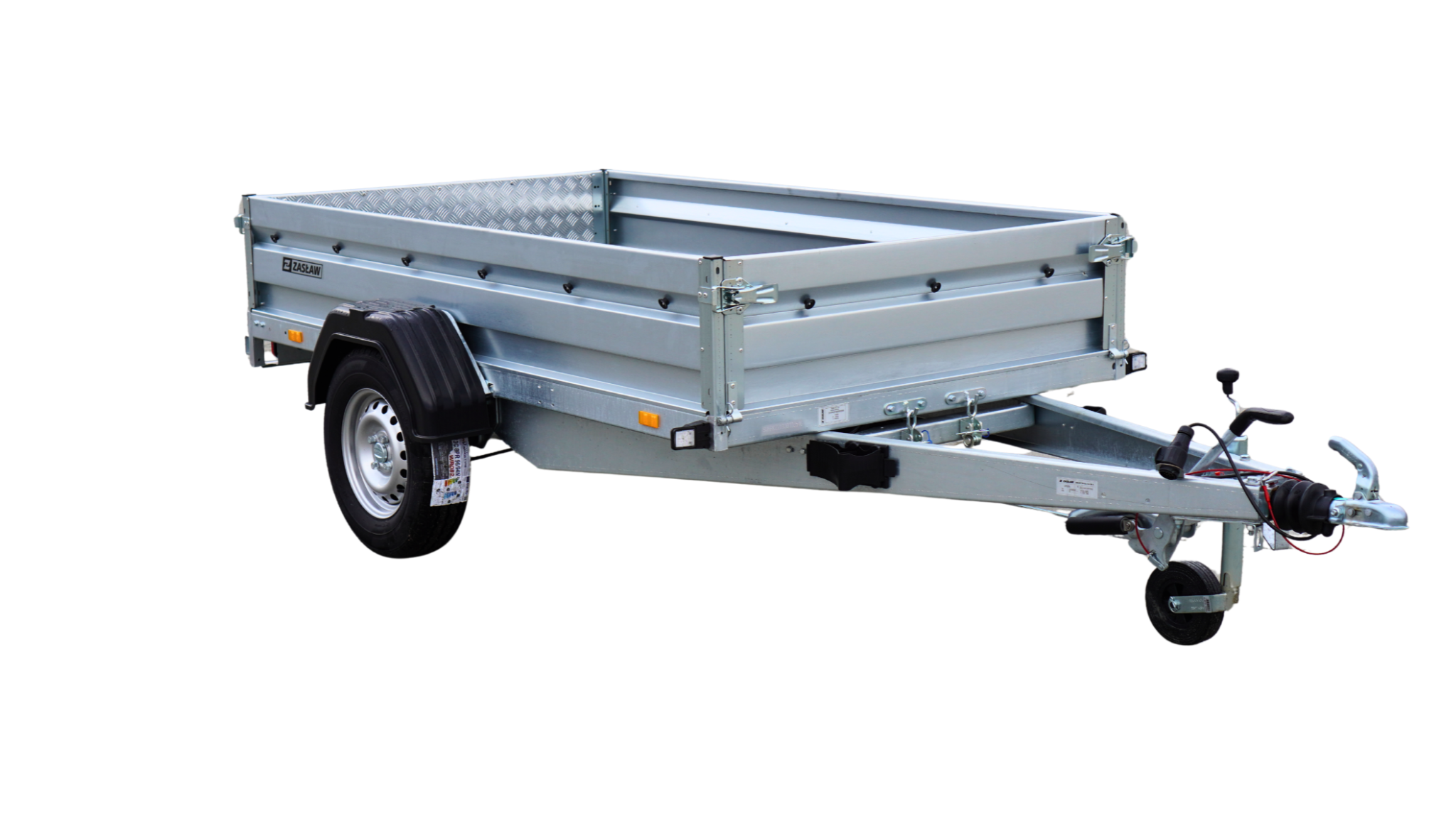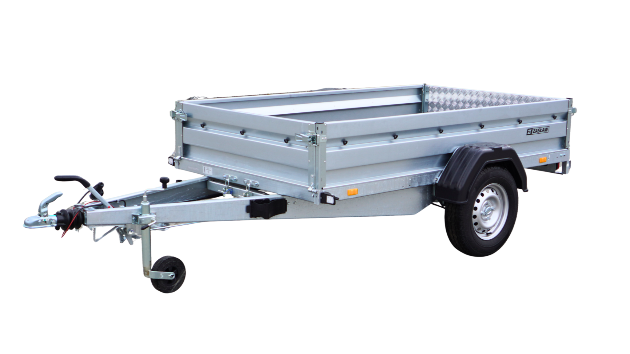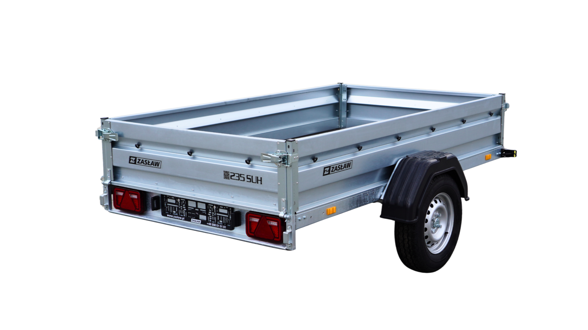 Грузовые прицепы «Заслав» — это современная линейка автомобильных прицепов, изготовленных из лучших материалов, доступных на польском рынке. Изделия этой категории характеризуются, в частности, современным дизайном холоднокатаных бортов, прочными боковыми крюками с компенсацией и дышлом проводящим от оси (с DMC 1350 кг) для большей прочности конструкции. Грузовые прицепы «Заслав» в стандартной комплектации оснащены электрооборудованием 12 V с 13-контактным разъемом в стандартной комплектации (дополнительный 7-контактный адаптер). Все элементы рамы горячего цинкования, что гарантирует их долговечность и высокую устойчивость к коррозии. Грузовые тормозные прицепы дополнительно оснащены в инерционный тормоз фирмы KNOTT Все модели тормозных прицепов фирмы «Заслав» имеют открывающуюся переднюю и заднюю стенки, опорное колесо с кронштейном и держатели закрепляющие товар, а также ролики, фиксирующие тент и боковые кронштейны, прикрученные к бокам вместе с брызговиком. Грузовой кузов на 235 SUH доступен в наклонной версии.